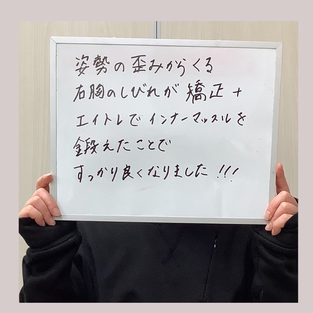 姿勢のゆがみからくる右胸のしびれが矯正+エイトレでインナーマッスルを鍛えた事ですっかり良くなりました!!