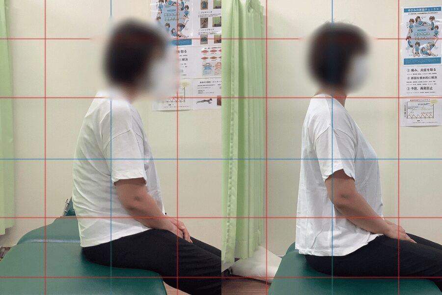 いい姿勢を定着するために12回ほど猫背矯正を施術し、メンテナンスで