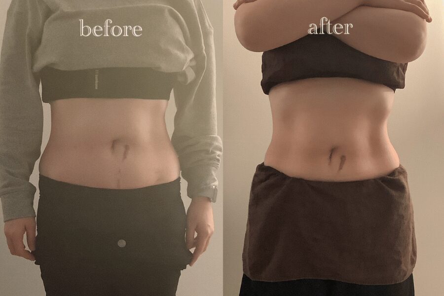 猫背矯正を施術し骨盤から整える事で1回でも外見上の変化が見られました。