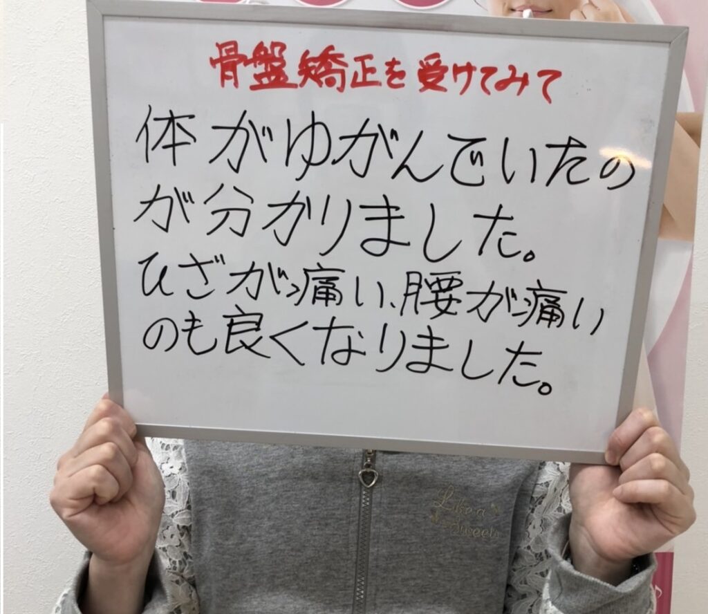 以前からの腰痛をあきらめていましたが、骨盤矯正を12回ほどやって良くなりました。今度は腰痛が出ないようにインナーマッスルを鍛えていきたいと思います。