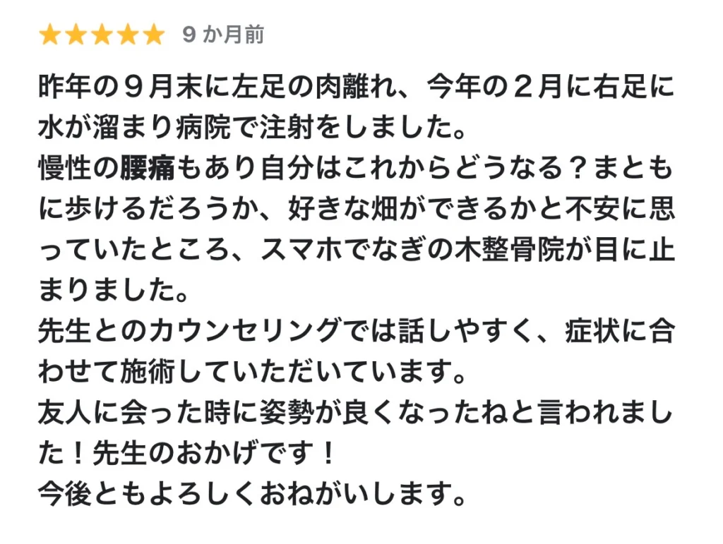 なぎの木整骨院には、仙北市だけでなく大仙市からも、腰痛・肩こり・しびれ・姿勢のお悩みで来院されています。