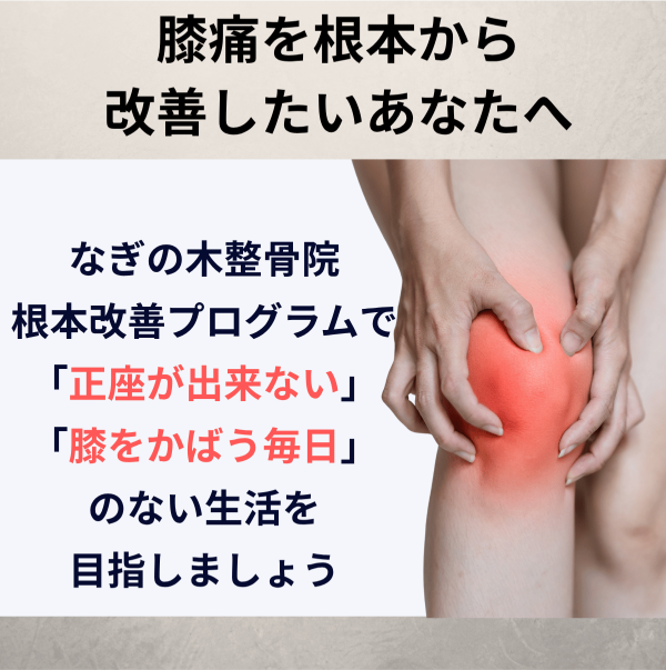 👉膝だけを強く押したり、無理に動かす施術は行いません。