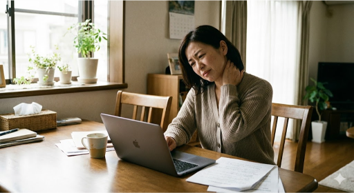 肩こりの背景に、生活リズムや緊張状態が関係していることもあります。