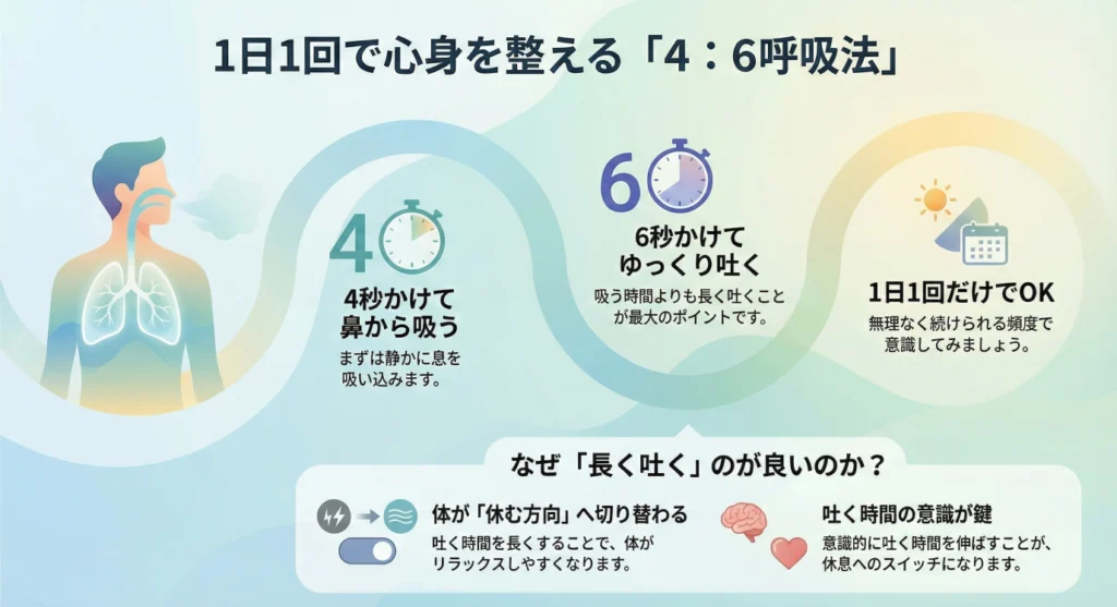 長く吐く呼吸」を意識してみてください。